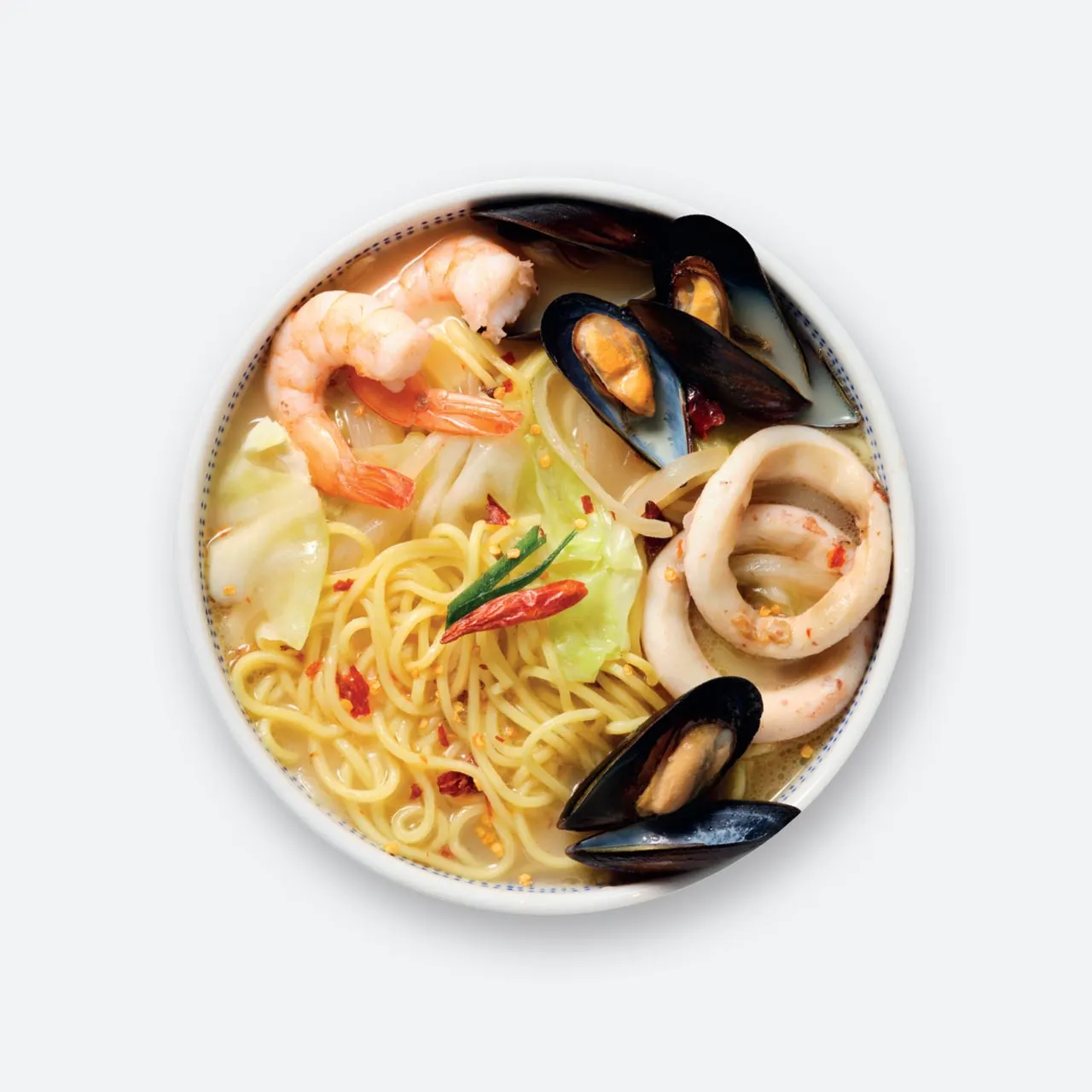 나가사끼 소스, 면, 홍합, 새우, 오징어, 양파, 양배추, 대파, 고추, 식용유
