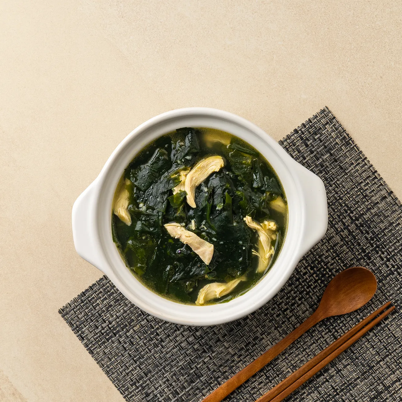 완도산 자른 미역, 육수베이스, 수비드 닭, 다진 마늘, 두부
