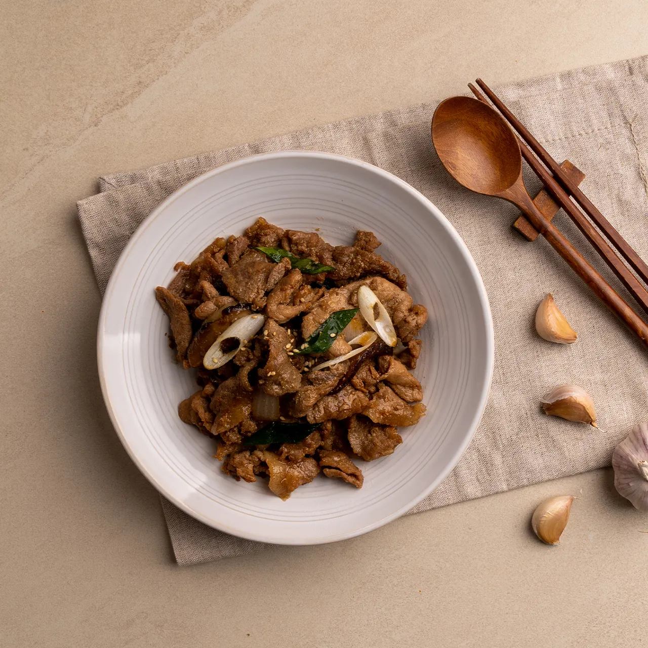 국내산 간장 제육, 양배추, 대파, 밀떡